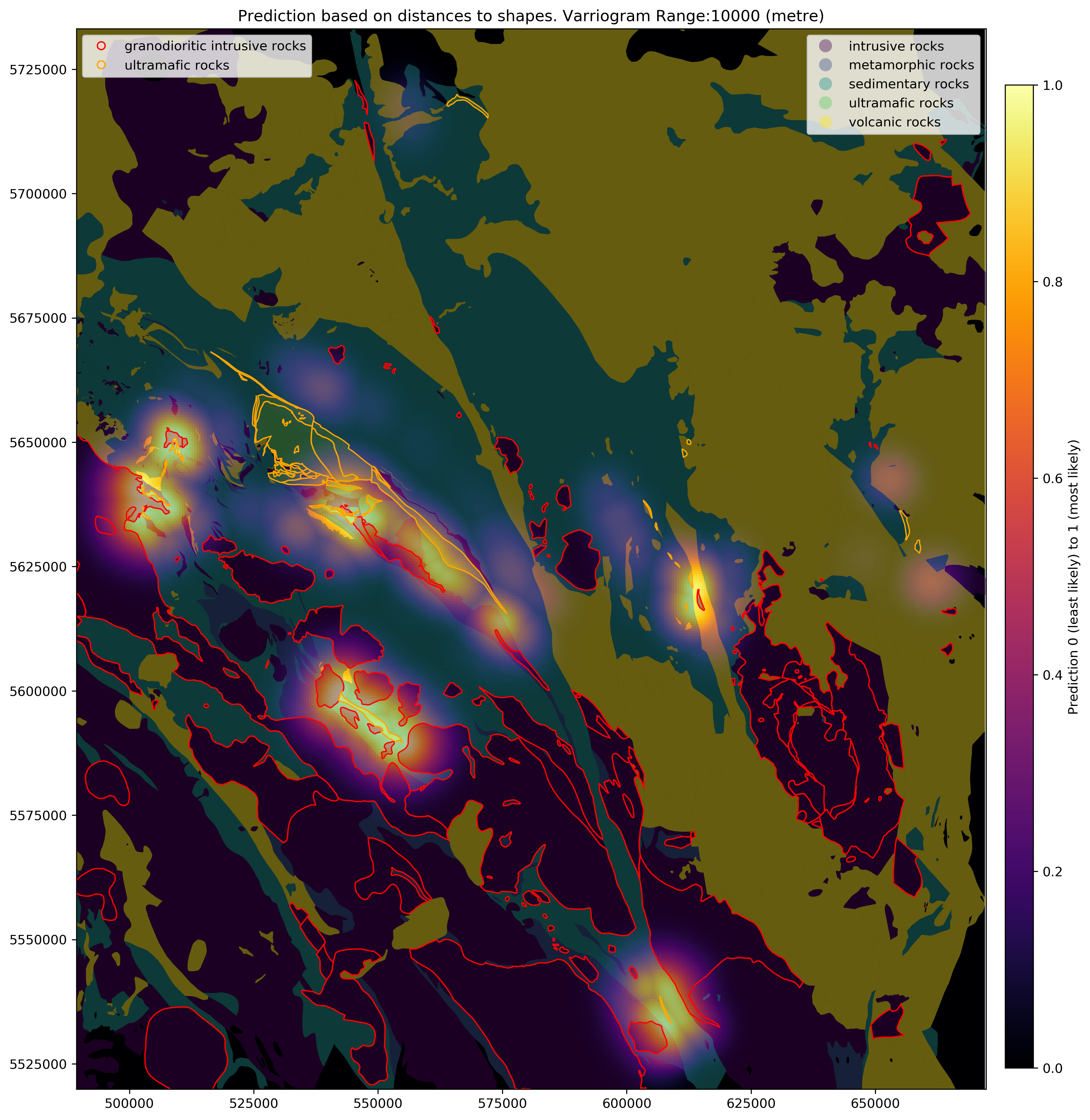This is a simple prospectivity prediction package that predicts the prospectivity of an element based on how close it is to different bedrock units.